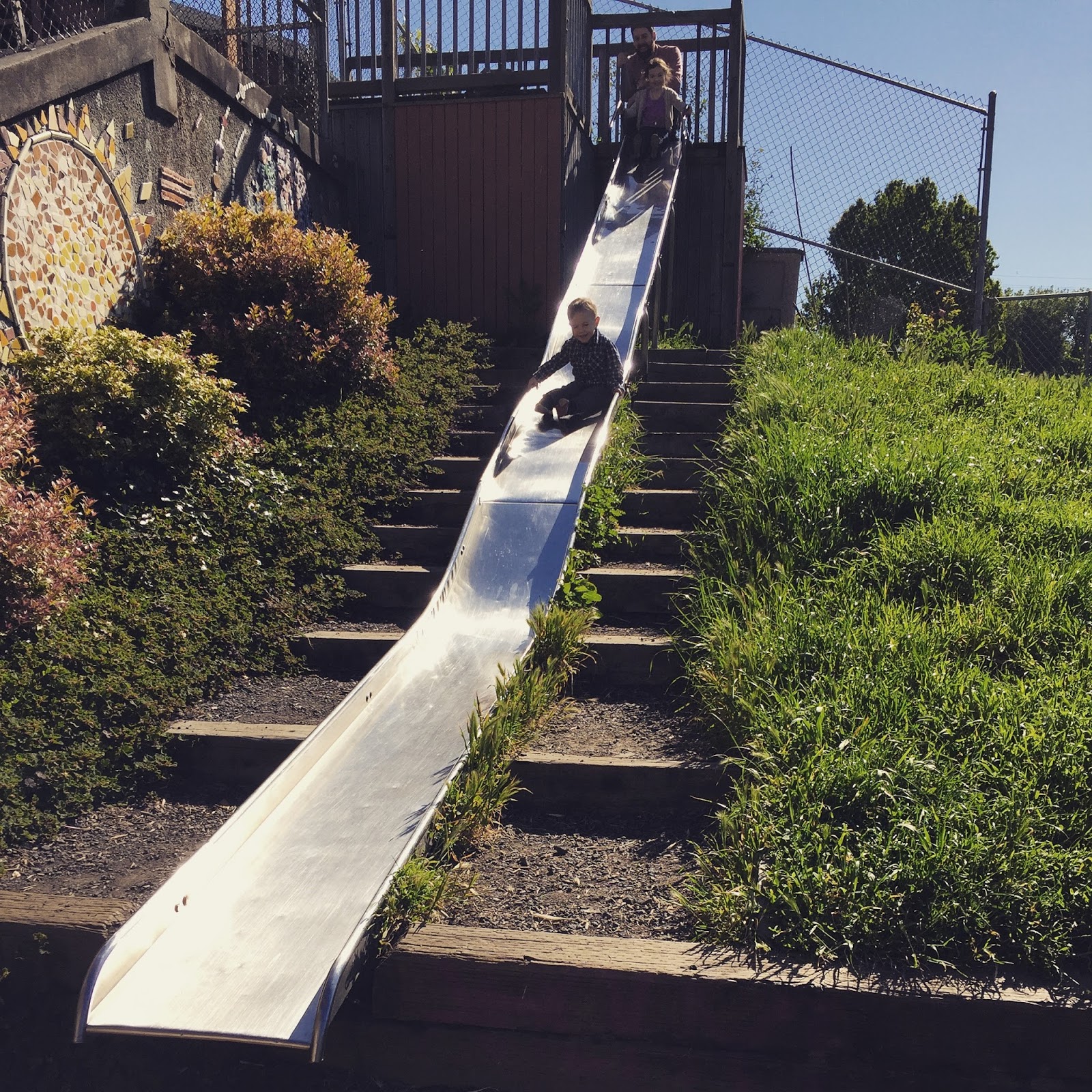 At the place where we park to ride the shuttle to church, they have this awesome slide! The kids loved it (and so did we!).