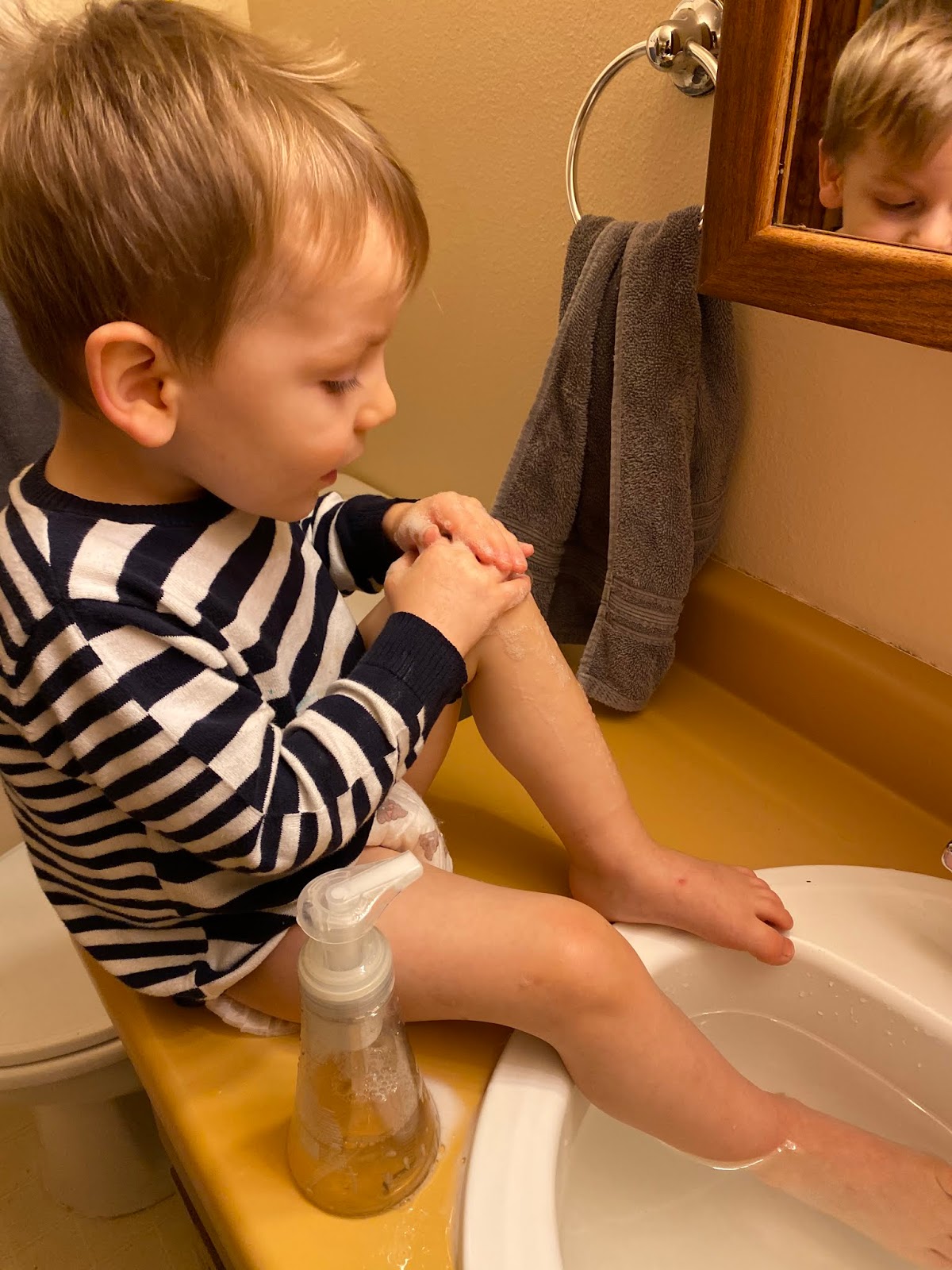 This is how hard he has to pull to open the fridge! Haha. But seriously, he gets into it all day long.